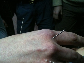 Иглы ставятся по форме Багуа, затем тонкой проволокой соединяются между собой и с цветком - ...