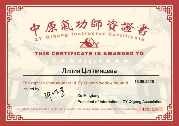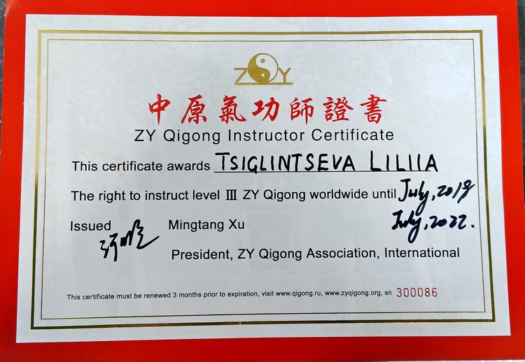 Сертификаты инструктора Лилия Циглинцева